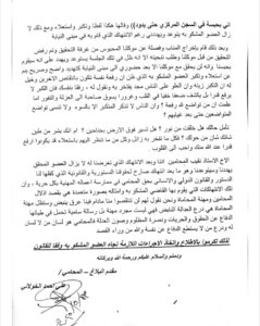 وأشار المحامي في بلاغه أن هذه الممارسات تمثل انتهاكاً صارخاً لحقوق المحامين التي كفلها الدستور والقوانين النافذة , مشدداً على أن مهنة المحاماة ليست خصومة وإنما شراكة في تحقيق العدالة .